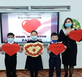 3 "Б" сынып жетекшісі Сисенғалиева Амангүл Сүлейменқызы 1 наурыз - Алғыс айту күніне орай "Алғыс айту - парызым!" тақырыбында тәрбие сағатын өткізді