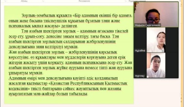 "Қоғамда зорлық-зомбылыққа жол жоқ" тақырыбында сынып сағаты өтті.