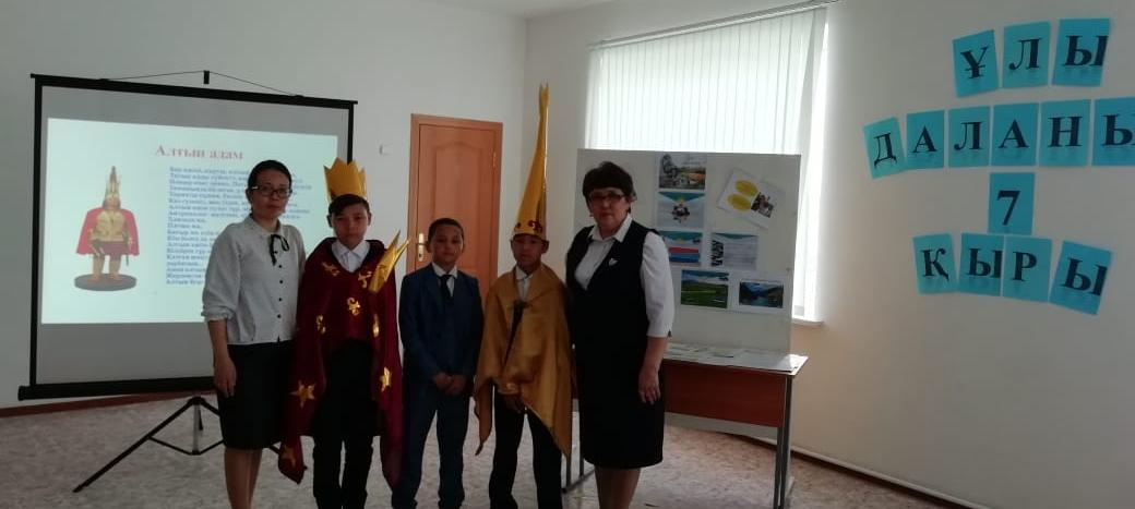 Абай Құнанбаев атындағы орта мектебінде тарих пәнінің мұғалімдері Есеева Агис Аамбайқызы және Ибрашева Маргарита Еркінғалиқызы Елбасының «Ұлы даланың жеті қыры» атты мақаласын негізге ала отырып, тәрбие сағатын ұйымдастырды.