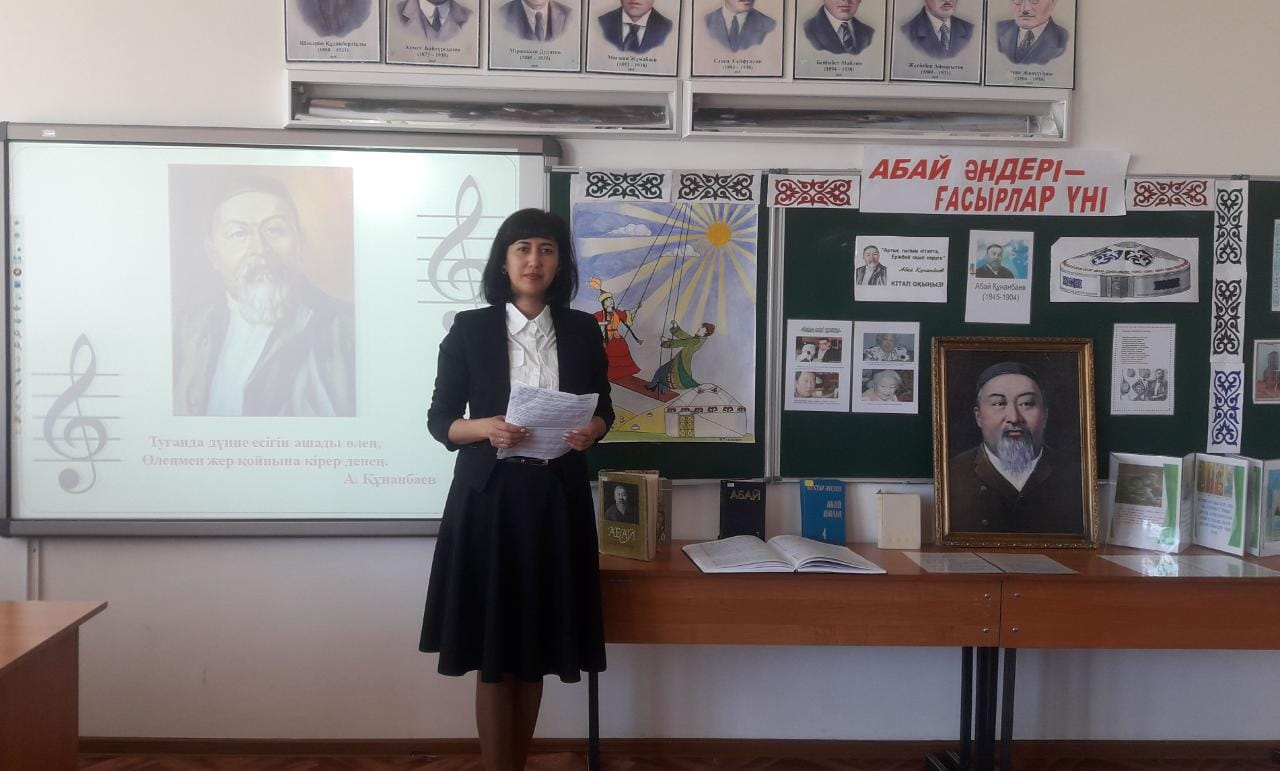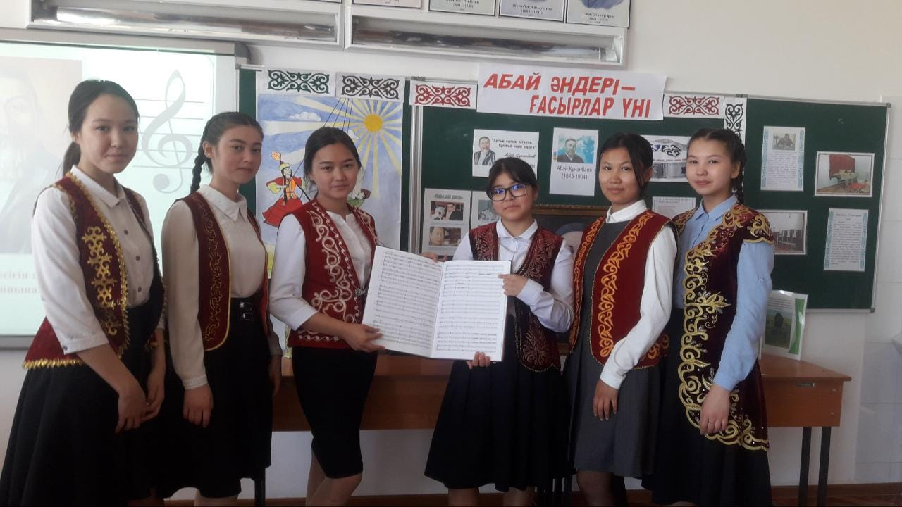 Абай Құнанбаев атындағы орта мектебінде сәуір айының 25-і күні «Абай әндері – ғасырлар үні» тақырыбында 10 сынып оқушылары және жетекшісі Тоғызбаева Гүлсиланың ұйымдастыруымен танымдқ сағат өтті.