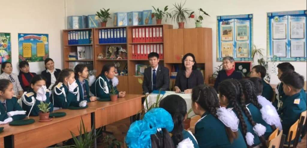 Кездесу кешіне Тұңғыш Елбасының арнайы шақыртуымен Ақорда төрінде арнайы қонағы болып келген «Аналар үндестігі» ұйымның төрайымы Биташева Гүлсім Кантөреқызы және кент ардагері Р.Үмбетов 2б және «Жас сарбаздар» сыныбының оқушыларымен кездесті. Оқушылар келген қонақтарды гүлмен қарсы алды. «Елбасы жолы» видеоролигі көрсетіліп, Елбасының Тәуелсіздікке қол жеткізу жолындағы еңбегі, жасаған игі істер туралы әңгімеленді. Гүлсим Кантөреқызы өзінің Ақорда төріне қалай шақырту алғандығы жөнінде, өзінің еңбек жолы туралы әңгімелеп берді.