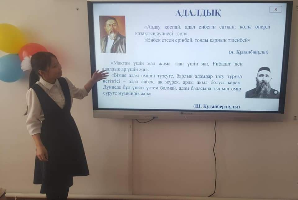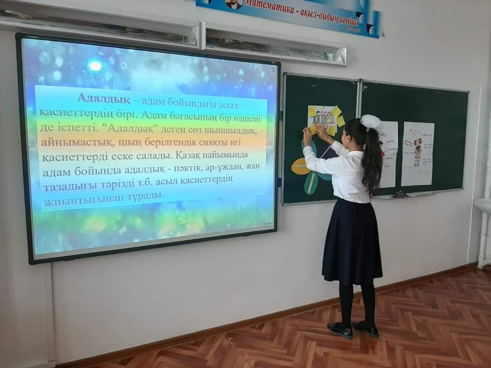 Абай Құнанбаев атындағы орта мектебінде 17 қаңтар күні "Адалдық сағаттары" республикалық акциясы барысында сынып сағаттары, дөңгелек үстелдер өтті.
