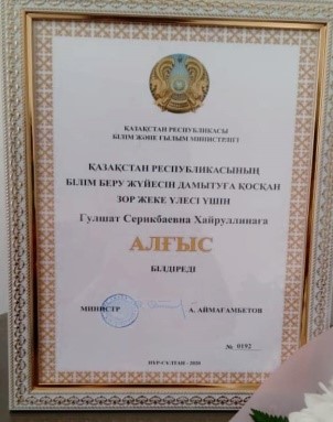 9.10.20ж – Атырау облысы, Мақат ауданы, Доссор кенті Абай Құнанбаев атындағы орта мектебінің жоғары санатты, бастауыш сынып мұғалімі, мектеп директорының бастауыш сыныптар бойынша оқу ісі жөніндегі орынбасары Хайруллина Гүлшат Серікбайқызы Қазақстан Респу