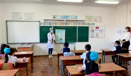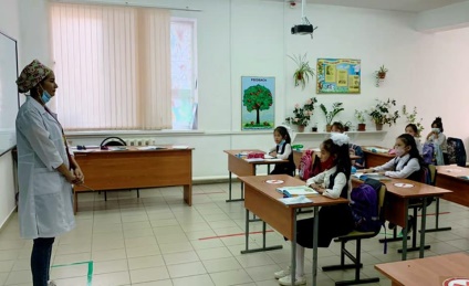 15.10.20ж - Атырау облысы, Мақат ауданы, Доссор кенті Абай Құнанбаев атындағы орта мектебінің медбикесі Ұзақова Айгерім вирустық инфекцияның (короновирус) алдына алу бойынша түсіндірме жұмыстарын жүргізді. Оқушыларға міндетті түрде бетперделерді тағуды және қолды қалай дұрыс жуу керектігі туралы айтылды.