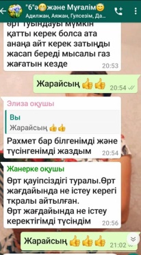 13.11.20ж - Атырау облысы, Мақат ауданы,Доссор кенті Абай Құнанбаев атындағы орта мектебінде оқушылардың өрт қауіпсіздігі ережелері туралы білімдерін қалыптастыру, қауіп төнген кезде өздерін қорғай білуге машықтандыру, өз өмірлеріне жауапты екендіктерін ұғындыру мақсатында "Өрт қауіпсіздігі" тақырыбында сынып сағаттары ұйымдастырылды.