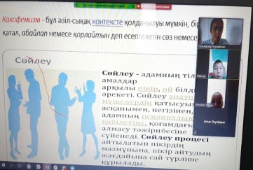 24.11.20ж - Атырау облысы, Мақат ауданы, Доссор кенті Абай Құнанбаев атындағы орта мектебі "Рухани жаңғыру" бағдарламасы аясында әзірленген жаңа арнайы "Дәстүр мен ғұрып" және Әдістемелік орталықтың "Отан менің өзімде"жобасын іске асыру бағытындағы 23-29 қараша аралығында өткізілетін "Ұл - шаңырақ иесі" тақырыбындағы ұлдарға арналған апталық жоспарына сай 5 "А" сыныбында "Сөйлеу мәдениеті.Какофемизм" (Жасөспірімдер арасындағы сөйлеу мәдениеті) тақырыбында сынып сағаты өткізілді.