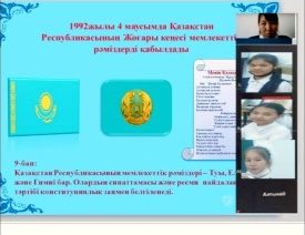 22.11.20ж - Атырау облысы, Мақат ауданы, Доссор кенті Абай Құнанбаев атындағы орта мектебі 7 "Б" сыныбында " Қазақстан Республикасының Мемлекеттік рәміздері" тақырыбында тәрбие сағаты өтті.