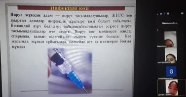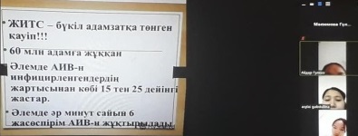 30.11.20ж - Атырау облысы, Мақат ауданы, Доссор кенті Абай Құнанбаев атындағы орта мектебінде 1 желтоқсан Дүниежүзілік ЖИТС-ке қарсы күрес күніне орай 9 "А" сынып оқушыларына "ЖИТС - ғасыр дерті" тақырыбында сынып сағаты ұйымдастырылды.