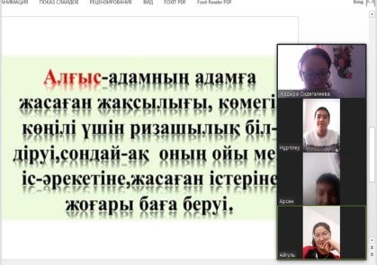 01.03.21ж – 8 "Б" сыныбының "Алғысым шексіз!" тақырыбында тәрбие сағаты.