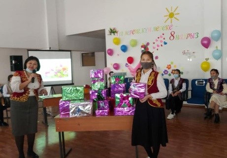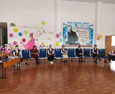 03.03.21ж - Атырау облысы, Мақат ауданы, Доссор кенті Абай Құнанбаев атындағы орта мектебінде қыз балаларға рухани тәрбие беру арқылы халқымыздың дәстүрлі құндылықтарын ұғындыру, білімге және өнерге ынталандыру. Ананы құрметтеу, сыйлай білуге, қыз балалардың бойындағы қабілеттері мен таланттарын дамыту, адамгершілікке, ізгілікке, достықты қастерлей білуге,бір-біріне құрметпен қарауға тәрбиелеу мақсатында «Қызғалдақ» қыздар ұйымының 9-11 сынып қыздары арасында мектеп психологтары М.Табынаева мен А.Айтмухамбетова
