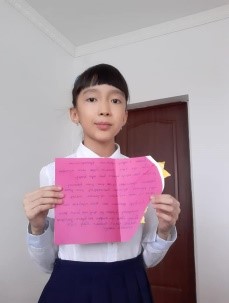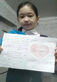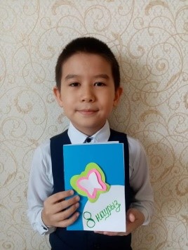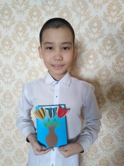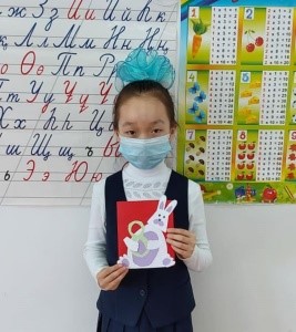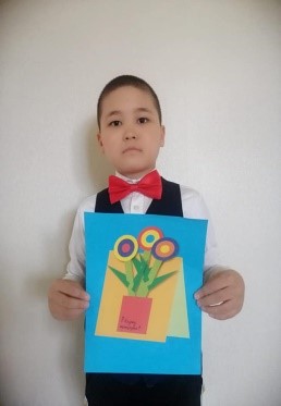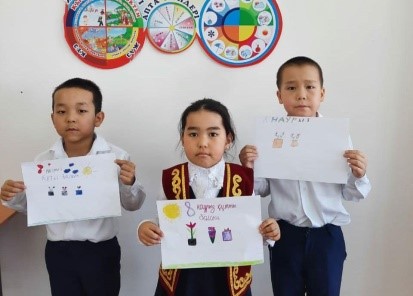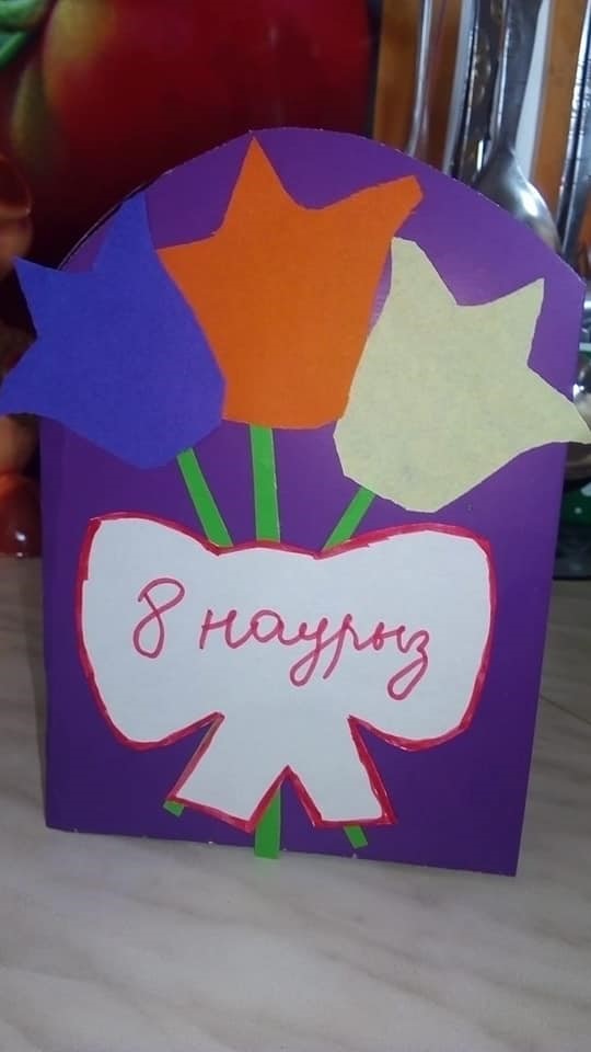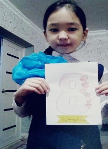 07.03.21ж - Атырау облысы, Мақат ауданы, Доссор кенті Абай Құнанбаев атындағы орта мектебінде "Анама арнаймын" акциясы аясында 8 наурыз-Халықаралық әйелдер күніне орай оқушылар аналарына, әжелеріне арнап суреттер салып, ашық хаттар мен қолөнерлерін сыйға тартты.