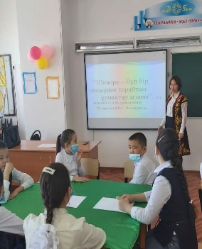 17.03.21ж - Атырау облысы, Мақат ауданы, Доссор кенті Абай Құнанбаев атындағы орта мектебінің 5 сыныптарында "Шежіре күнін" атап өту мақсатында "Жеті атаны не үшін білу қажет?" тақырыбында танымдылық сағаты ұйымдастырылды. Мектеп кітапханашысы: Жаукенова Г.Ж.