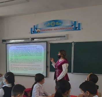 17.03.21ж - Атырау облысы, Мақат ауданы, Доссор кенті Абай Құнанбаев атындағы орта мектебінде "Наурыз" мейрамын тойлау тұжырымдамасы бойынша 17 наурыз-Тарихқа тағзым күніне орай "Тарихтан тағылым - өткенге тағзым" тақырыбында тарихи сағат ұйымдастырылды.