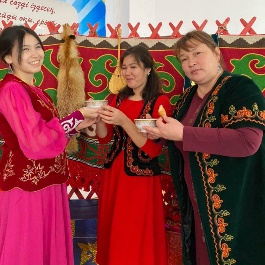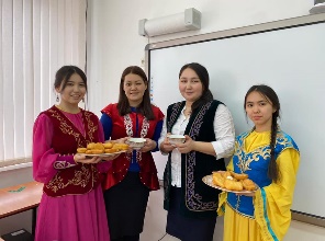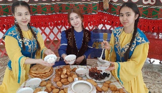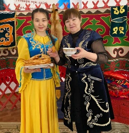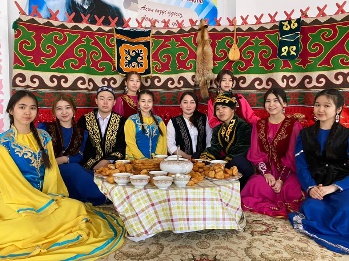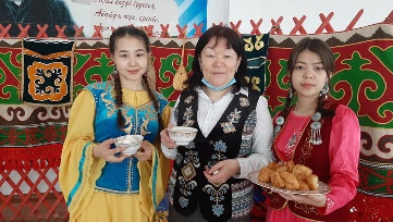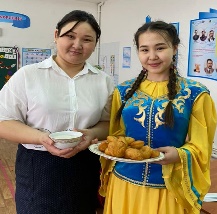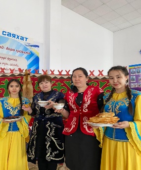 19.03.21ж - Атырау облысы, Мақат ауданы, Доссор кенті Абай Құнанбаев атындағы орта мектебінде Ұлыстың Ұлы күні - Наурыз мерекесі қарсаңында 11 "А" сынып оқушылар мектеп қызметкерлеріне және оқушыларға қазақтың ұлттық тағамдарын ұсынды.