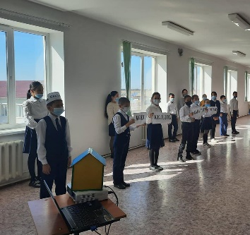 01.04.21ж - Атырау облысы, Мақат ауданы,Доссор кенті Абай Құнанбаев атындағы орта мектебінің "Жас Ұлан" ұйымы жоспарына сәйкес, мектеп Ұланбасы Аманжолова Жұлдыз және мектеп тәлімгері Бүркішова Әсемгүл құстар күніне орай "Қош келдің, қанатты достар" тақырыбында 5 сыныптар арасында сыныптан тыс шарасын ұйымдастырды. Мақсаты: Оқушыларды қоршаған ортаны қорғауға тәрбиелеу.
