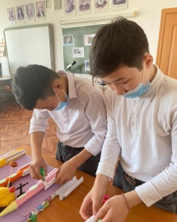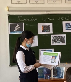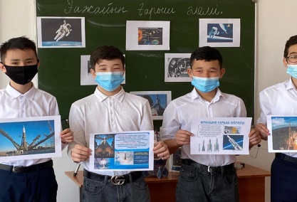 12.04.21ж - Атырау облысы,Мақат ауданы,Доссор кенті Абай Құнанбаев атындағы орта мектебінде 12 сәуір - Ғарышкерлер күніне орай 9 "А" сыныбында "Ғажайып ғарыш әлемі" тақырыбында сынып сағаты ұйымдастырылды. Сынып жетекшісі: Г.Мағзомова