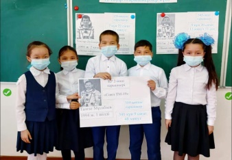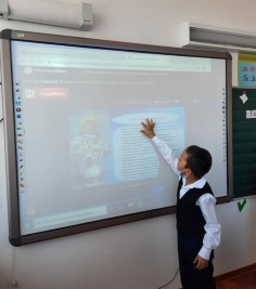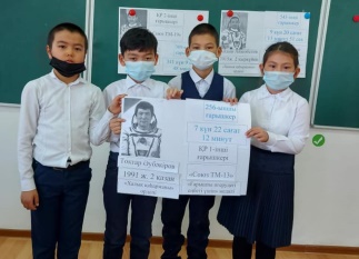 13.04.21ж - Атырау облысы,Мақат ауданы,Доссор кенті Абай Құнанбаев атындағы орта мектебінде 12 сәуір - Ғарышкерлер күніне орай 4 "А" сыныбында "Ғажайып ғарыш әлемі" тақырыбында сынып сағаты ұйымдастырылды. Сынып жетекшісі: Г.С.Хайруллина