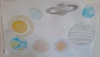 13.04.21ж - Атырау облысы, Мақат ауданы, Доссор кенті Абай Құнанбаев атындағы орта мектебінде бастауыш сыныптар аралығында Ғарышкерлер күніне арналған "Ғарыш әлемі балалар көзімен" атты сурет көрмесі ұйымдастырылды.