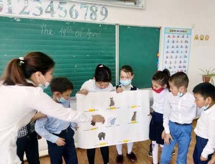15.04.21ж - Атырау облысы,Мақат ауданы, Доссор кенті Абай Құнанбаев атындағы орта мектебінде орыс тілі мен ағылшын тілдер бірлестігі "Язык - наш дар бесценный" тақырыбында апталық ұйымдастырылды. Апталық барысында ағылшын тілі пәні мұғалімі Айтмухамбетова Б.М. 2 "А" сыныбында "What can animals do?" тақырыбында ашық сабақ өткізілді.