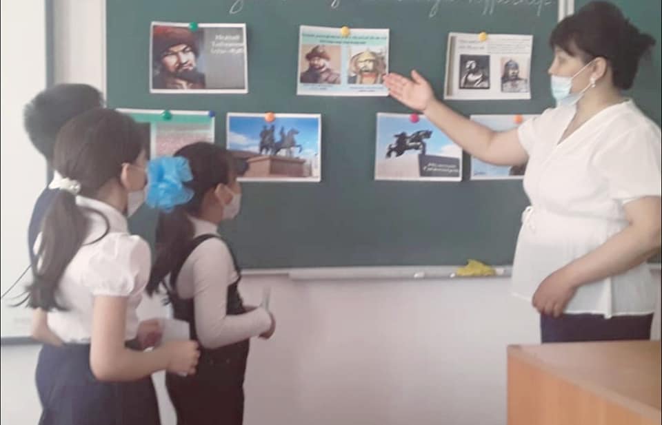 21.04.21ж - Атырау облысы, Мақат ауданы, Доссор кенті "Абай Құнанбаев атындағы орта мектебі" КММ Исатай Тайманұлының туғанына 230 жыл толуына орай "Исатай Тайманұлы-азаттық жолындағы күрескер" тақырыбында 3 "Б" сыныбында сынып сағаты ұйымдастырылды.