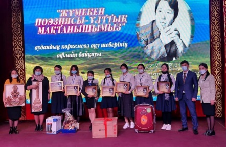 27.04.21ж - "Жұмекен поэзиясы-ұлттық мақтанышымыз" атты аудандық көркем сөз оқу шеберінің байқауы өтті. Байқау қорытындысы бойынша мектебіміздің оқушысы Қуандыққызы Айымгүл жүлделі ІІІ орынды иеленді. Құттықтаймыз!